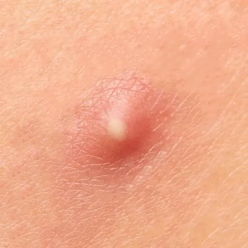 농포는 고름이 찬 주머니로, 구진보다 한 단계 진행된 상태입니다.